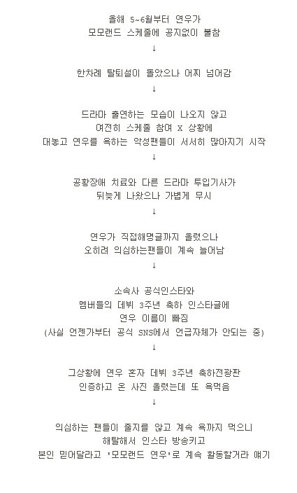 뭔가 스케줄빠지는거랑 논란되는 일들을 자기 의지가 아니라고 말해주는 것 같음