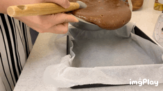 4. 반죽틀에 종이호일이나 유산지를 깔고 부어줍니다