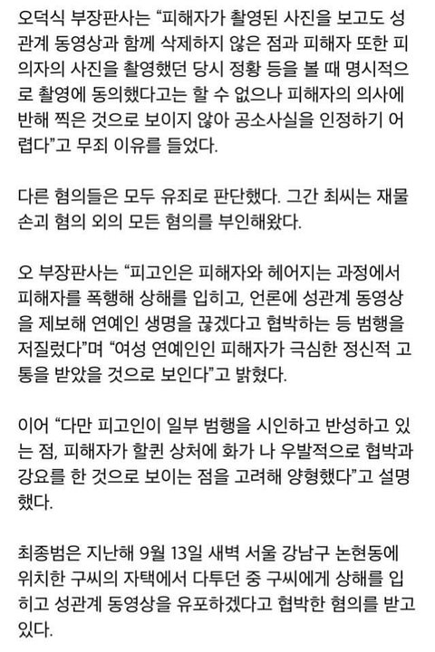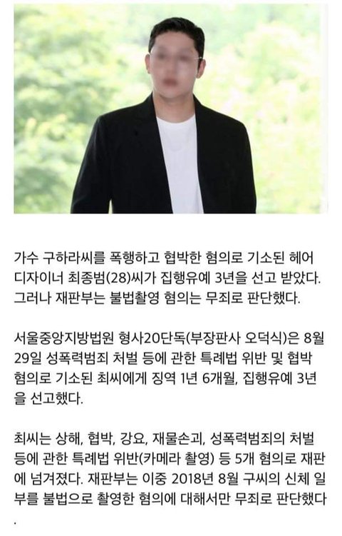 법원 "최종범 폭행,협박은 집행유예 불법촬영은 무죄"