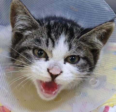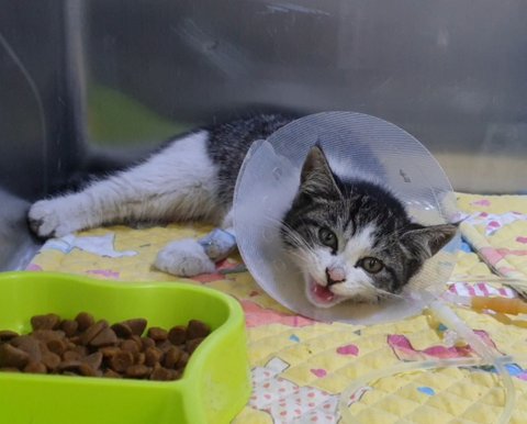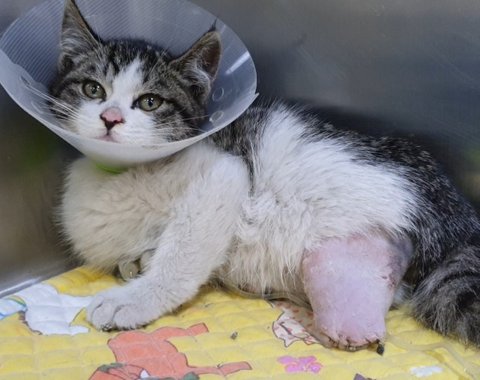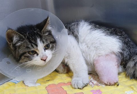 그물에 다리가 휘감겨 잘라낼 수 밖에 없었던 새끼냥