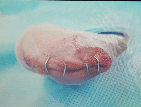 무릎 바로 아래를 잘라냈다고 합니다.