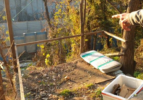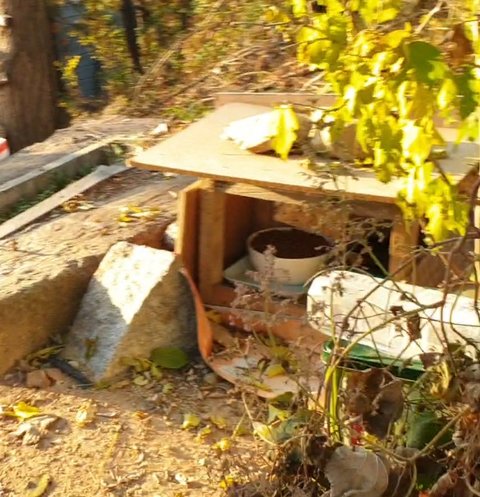 잠은 가파른 언덕 중턱에 놓여진 여기 스티로폼 집에서 살고있나 봅니다.