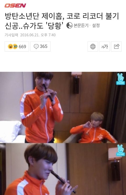 궁금해서 '제이홉 리코더' 치니깐 기사나오더라고 읽어보니