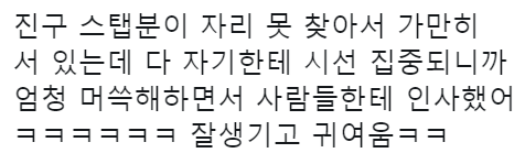 ㅋㅋㅋㅋㅋㅋㅋㅋㅋㅋ 알고보니 자리 못 찾아서 다니는 거였..ㅋㅋㅋㅋㅋㅋ