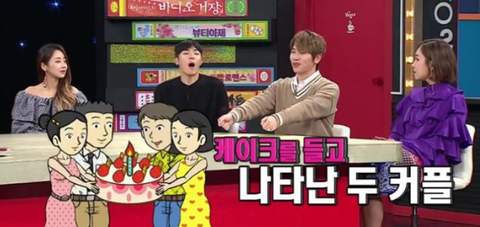 아까 퇴장했던 두 커플들이 케이크를 들고