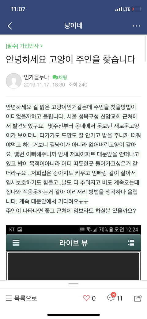 입양은 제가 키우는 두 냥이 때문에 힘들 것 같아
