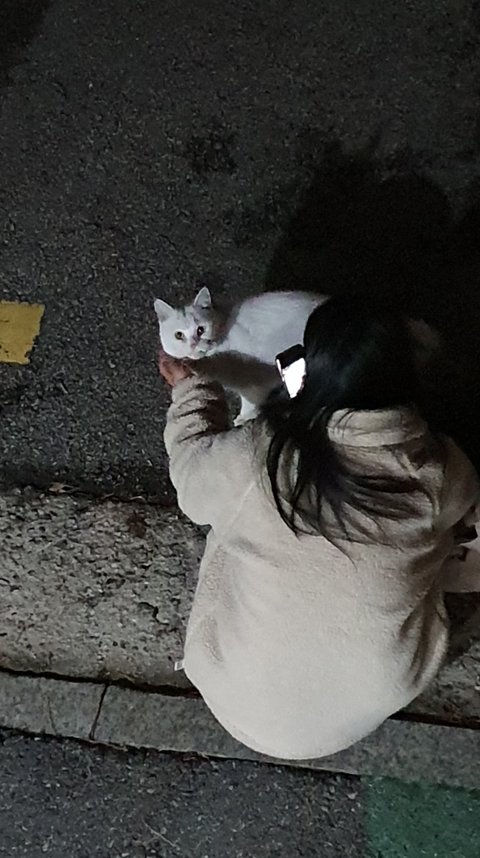 찹쌀이가 처음 나타나던 쯤에 이사간 흰 고양이를 키우던 가족이 있었기 때문이에요.
