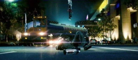 여러 특수효과가 접목된 장면이지만, 고속 열차의 실감난 느낌을 위해 톰 크루즈에게는 실제 상황과 비슷한 바람이 불어야 했다.