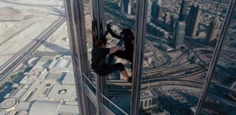 <미션 임파서블> 시리즈를 통틀어 톰 크루즈의 스턴트 연기 중 최고로 손꼽힌 것은, 단연 세계에서 가장 높은 빌딩으로 기록된 두바이 부르즈 칼리파를 올라가는 것이었다. 이 빌딩의 높이는 830m로 톰 크루즈는 이것마저 스턴트맨의 도움 없이 촬영을 마쳤다. 이 건물에서 사람이 떨어지게 되면 땅에 떨어지기까지 약 13초가 걸리며, 도달할 때 속도는 약 129m/s가 된다.
