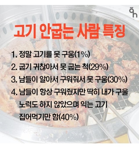 자기네들이 굽는걸 좋아하기도하고 내가 구우면 훈수두는거 진짜시름 ㅡㅡ 이렇게해봐 아니아니 고기너무크다 이렇게뒤집어야지 그냥 먹어 내가구울게..하는데 의기소침해져서 가위질도안되고.입열구 맛나게 먹는수밖에^^;;