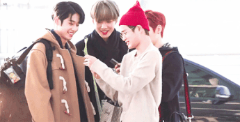기자들 앞 포토존에서 다같이 셀카를 찍기 시작한 에이비식스