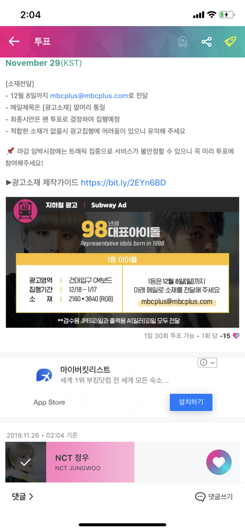정우 올라왔었는데 2등이랑 격차가 계속 줄고이써 ㅠㅠㅠㅠㅠㅠㅠㅠㅠㅠㅠ 시간 되는 즈니들 생각날 때마다 한번 씩 해주면 좋을 것 같아ㅏ.. 울 정우 보고싶다ㅏ ㅠㅠㅠ