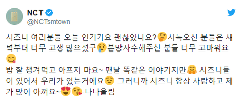 항상 정성 가득한 말들로 팬들에 대한 애정을 표현함