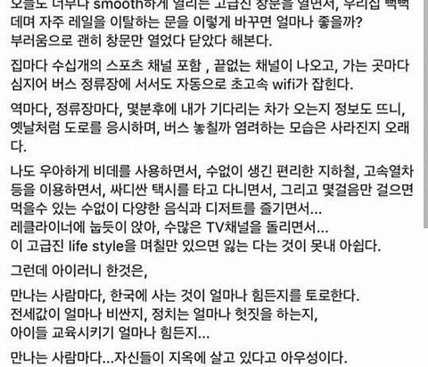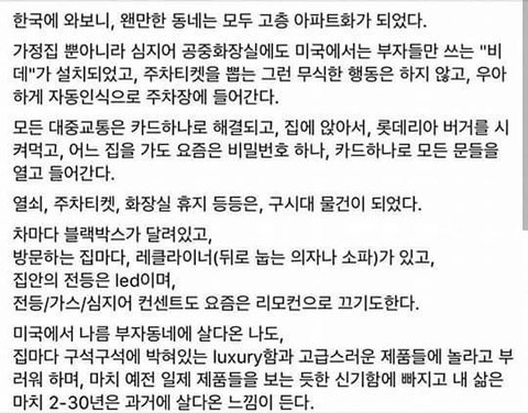 다른나라에 안살아봐서 몰랐는데 일본에 거주하고 있는 맘카페에서도 미국에서도 다 한국만 오면 자기가 촌년된거같대 점점 눈부시게 발전해가고 있는데 자기만 도태된거 같다고.. 전적으로 공감함