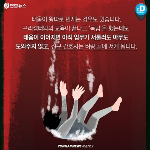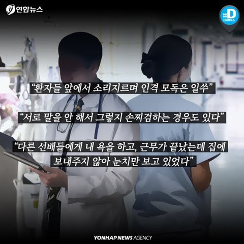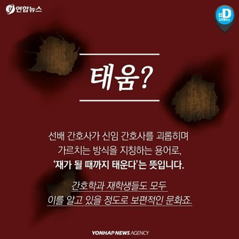 실수해서는 안되니까 태움 한다고? 염병하고 있네 예전에 병원에서 알바할때 간호사 여럿이서 착하고 일 잘하고 성실한 막내 간호사 이것저것 꼬투리 잡아서 괴롭히고 쉬지도 못하게 근무시간 짜고 커피 타와라 뭐해라 잡일 오지게 시키드만 수간호사는 방관하고 태움 시키는냔들 수간호사한테 알랑방귀 끼고 아주 왕국이 따로 없음