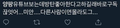 양팡이 방탄입덕하니까 구독취소함 ㅋㅋㅋㅋ