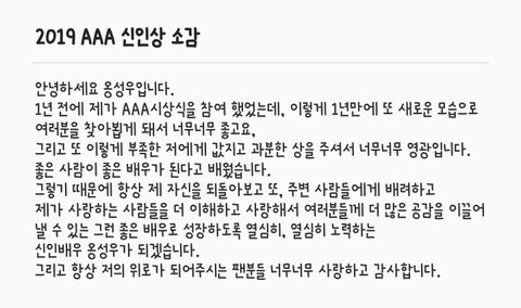 다시한번 옹성우 배우 신인상 축하해❤❤