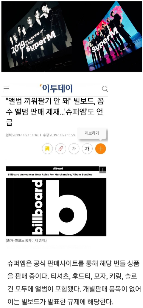 슈퍼엠이 케이팝 상술 동원해서 50종류가 넘는 끼워팔기로 차트 1위를 먹어버리니