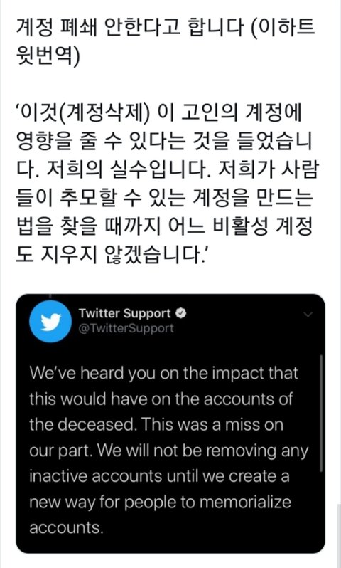 게다가 더 이상 제작되지 않는 프로그램(리얼리티, 서바이벌등)의 공계들, 판을 떠버린 홈마다 각 계정들도 모조리 삭제될 예정이라 다들 이번 일에 대해 부정적인 의견임.