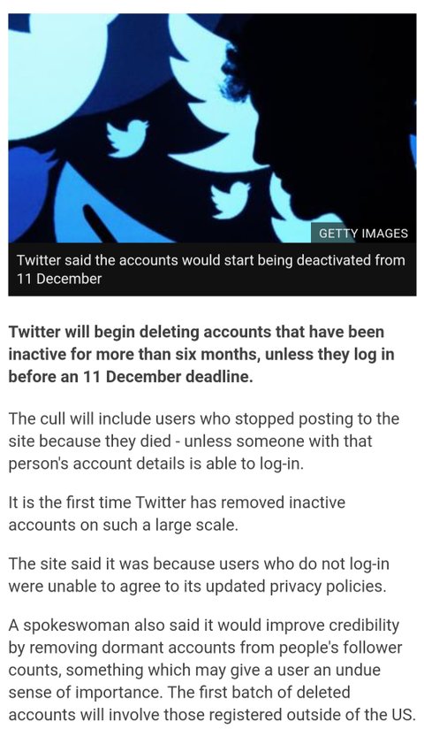 트위터가 이렇게 대거 계정 정리를 시도하는 건 이번이 처음인데, 트위터 측은 장기간 로그인하지 않은 사용자들이 업데이트된 개인 정보 보호 정책에 동의하지 않았기 때문이라고 발표함.
