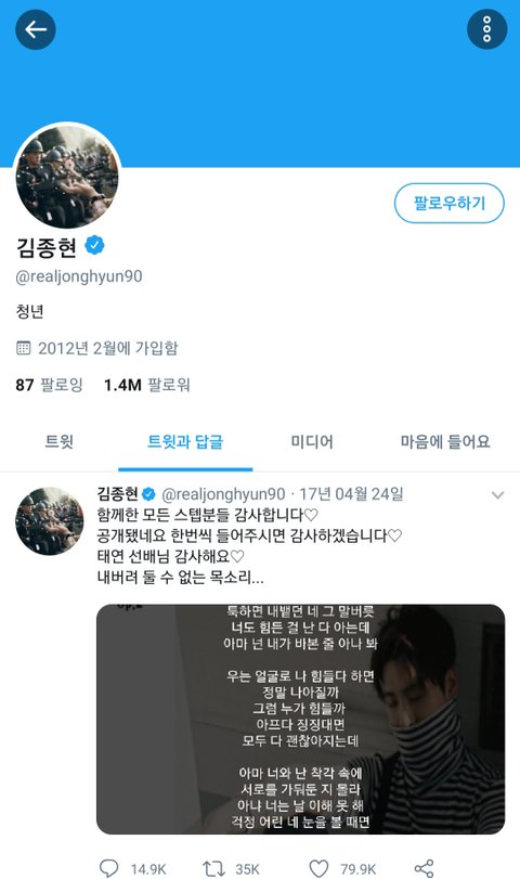 故 샤이니 종현(마지막 활동 : 2017년 4월 24일)의 계정까지 모조리 삭제되게 생겼음.