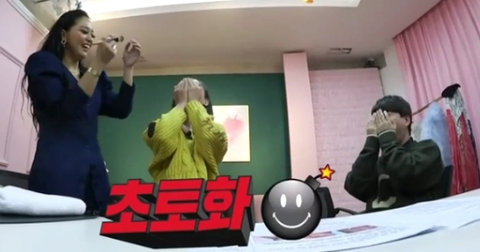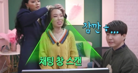 채팅창 반응에 자신의 얼굴 색으 궁금한 오나미가