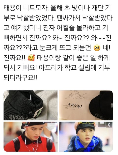 태용이 니트모자 낙찰후기