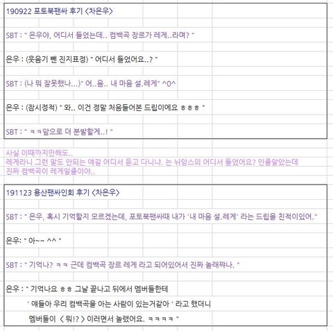 포토북 팬싸 때 내가 '내 마음 설.레게'라는 드립을 친 적이 있어