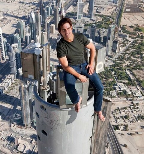 너무나도 안전한 케이블 상태 덕분에 톰 크루즈는 장시간의 촬영을 무리 없이 진행할 수 있었고, 촬영 막판 빌딩의 꼭대기서 기념사진을 찍는 추억까지 남겼다.