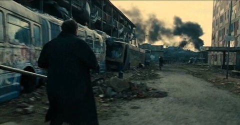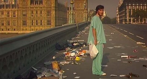 텅 빈 거리의 묘사를 통해 완성한 이 장면은 CG와 세트가 아닌 통제를 통해 이뤄진 사실적인 장면이다. 대니 보일 감독은 시민들의 이동이 뜸한 새벽 4시에 촬영을 진행해, 러시아워가 발생하는 지역은 경찰의 도움으로 오전 7시~9시까지 통제하도록 했다. 물론 시민들의 반발은 컸고 제작진은 엄청난 욕을 먹으며 촬영에 임해야 했다. 이러한 노력 끝에 원하는 배경을 얻는데 성공했지만, 이른 시간에 촬영한 타세 낮은 조도가 발생해 화면이 어둡게 묘사될 수 있었다. 그 때문에 영화의 모든 촬영을 필름 카메라가 아닌 디지털 카메라로 촬영을 진행했다.