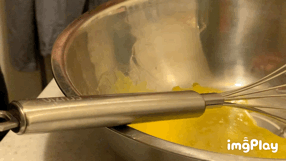 5. 노른자로 만든 반죽과 머랭을 섞어줘요