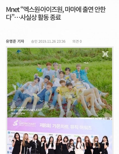 엑스원 아이즈원 사실상 활동 종료