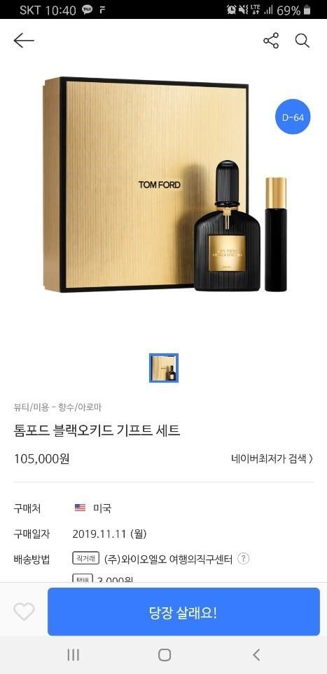 이번에 톰포드 블랙오키드 라인으로 블프 딜 적용되길래 여행의직구라는데서 질렀다..