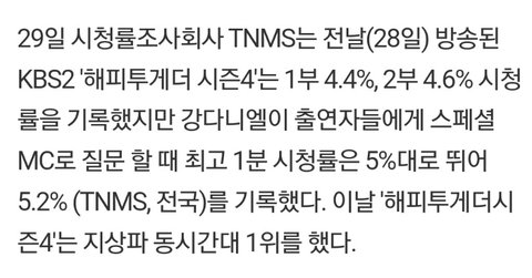 해피투게더4 강다니엘 스페셜MC출연 최고의 1분 시청률의 주인공