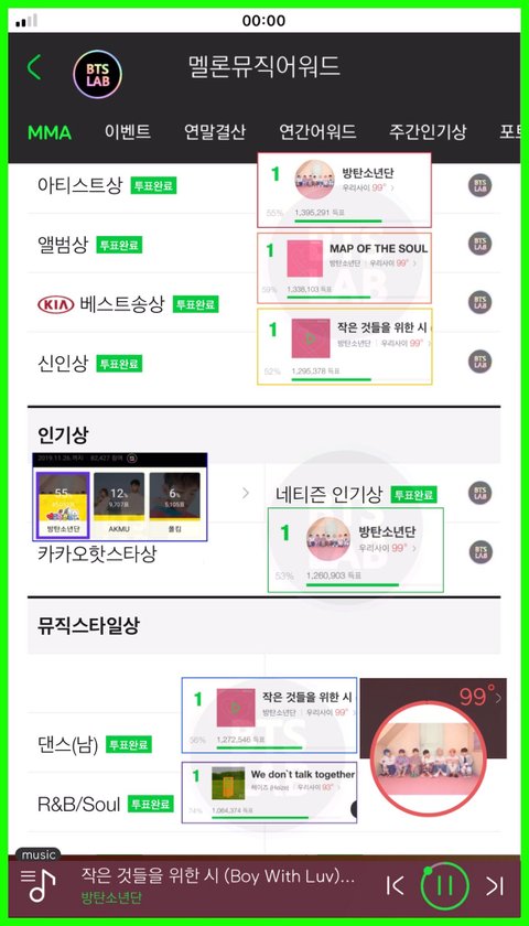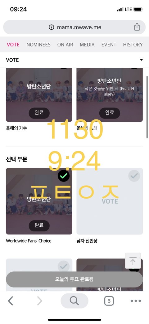 방탄소년단 전부문 1위로 투표마감