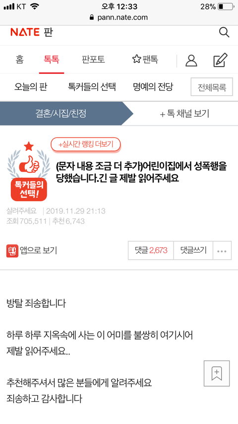 (엓관련아님) 톡선1위긴한데 아직못본애들 추천이라도 하나더누르고오셈