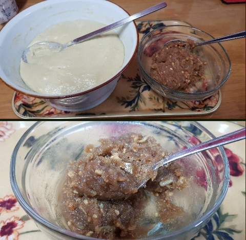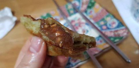 반죽 만들어 바로 만든 거는 식은 후에 먹으면 설 익은 것처럼 반죽 식감이 떡떡 한 느낌인데