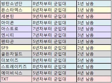 엔시티드림은 13년차부터 군대가서 지금 9년 남았대ㄷㄷ