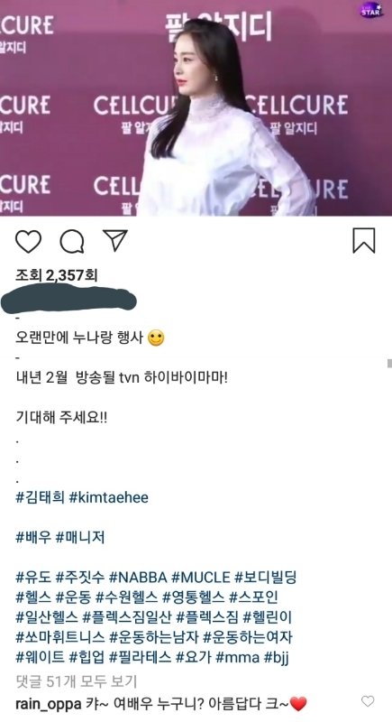 김태희 매니저 인스타에 댓글 단 비