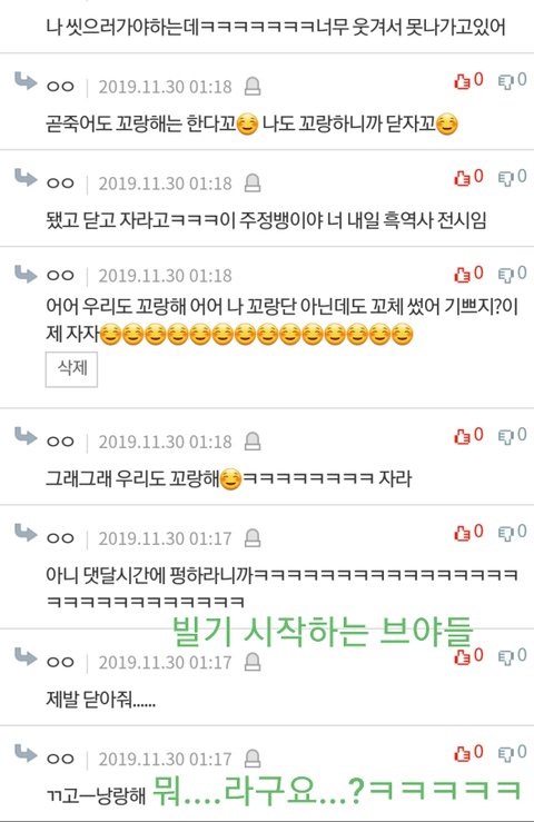 내가 몇개 빼먹어서 여기 안올라갔는데 참고로 개장꼬가 웃어야 닫는다고 해서 그때 모두 이악물미소를 보냈다고 한다^^
