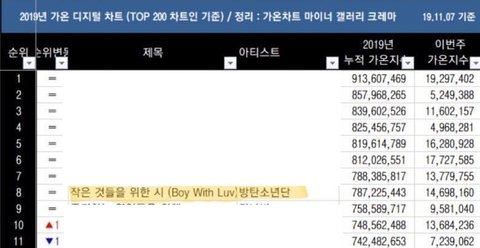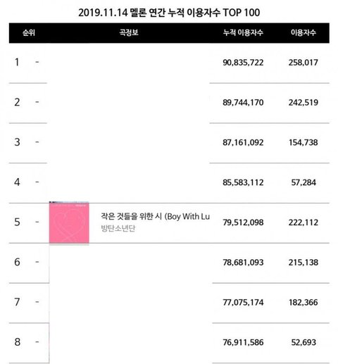 - 11월 14일 기준 멜.론 연간 차트 5위 예상