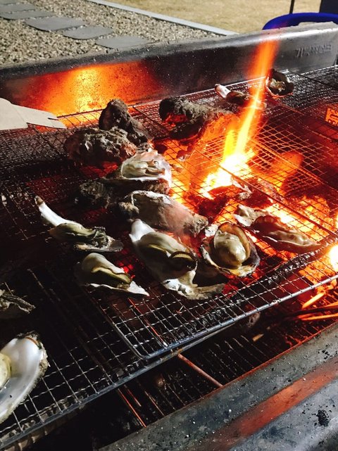 석화껍데기가 불에 튀어서 옷에 빵꾸가 났지만요...