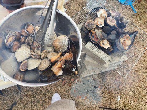 어제 친구들이 놀러와서 1차로 조개구이만 구울 예정이었는데