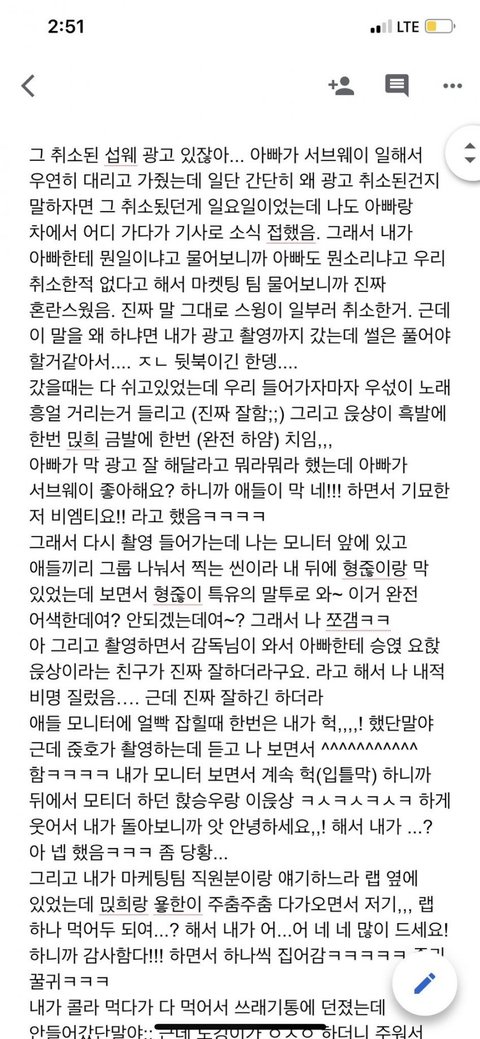 섭웨쪽이아니라 스윙이 거절한거였음 엑스원 광고 취소됐다고 조롱 오지게 당했는데 빡친다