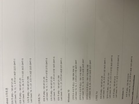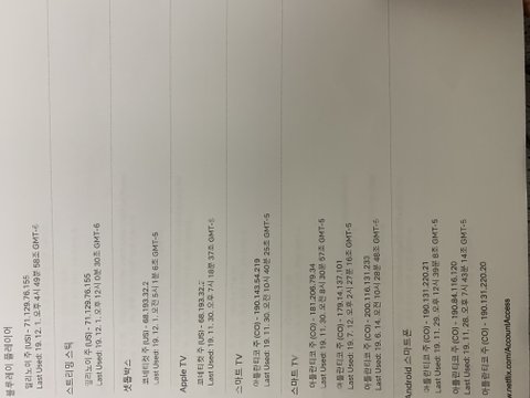 그리고 각 계정마다 '디바이스 시청기록' 을 통해 어디서 명의를 도용하였나 확인하였더니,