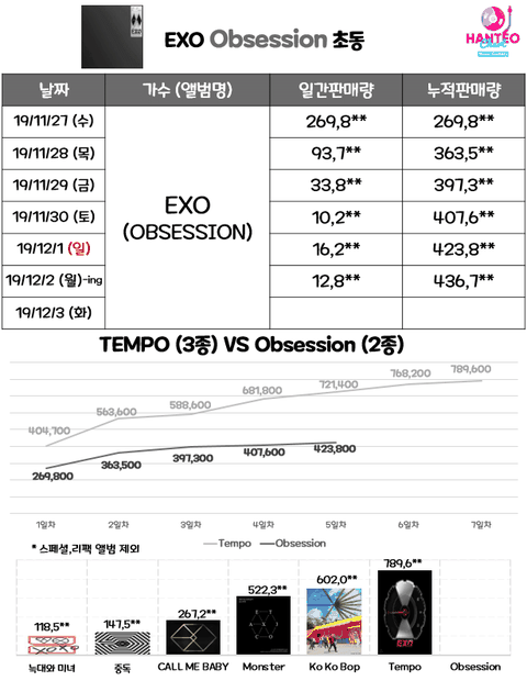 군백기 타격 커보이는 엑소 이번 앨범 초동 추이