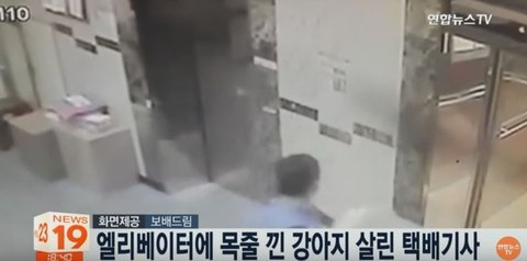 엘리베이터에 목줄 낀 강아지 살린 택배기사