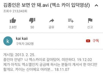 아까 종인이 인라에서 저 영상 본거 알았는지 계정주가 근황 업뎃함ㅋㅋ 근데 엑스 카이로 갈아탔대ㅋㅋㅋㅋ