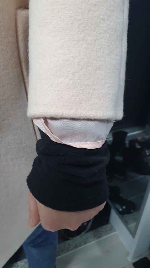 심지어 몸통부분은 코트가 너무 줄어서 안감이 말려 올라갔습니다.