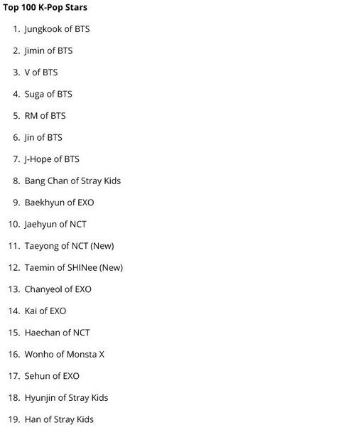 2019년도 텀블러 KPOP 아이돌 순위가 발표되었어.